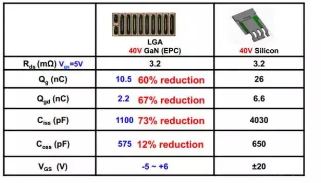 下面在贴出一张低压氮化镓和硅器件的比较,可以看出,总体来说,驱动损耗也会变得很小。