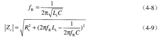 ESR和ESL对电容的高频特性影响最大,所以常用如图1(b)所示的串联RLC简化模型,可以计算出谐振频率和等效阻抗: