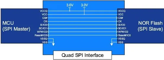 所有带有 SPI 接口的 MCU 都可以便捷地连接 NOR 闪存。NOR 闪存设备,例如赛普拉斯的 S25FL256L,为 SPI 提供了多个 I/O 读入选择,可支持双倍数据速率 (DDR) 以及四倍外设接口 (QPI) 连接。可以在同一总线上连接多个闪存,并使用片选 (CS) 信号进行单独访问。