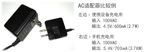 举例来说,最近特别是便携设备的充电用AC适配器变得既小又轻?图11是常看到的AC适配器,但左边采用变压器方式,右边则是开关方式。两者规格相互比较之下,右边明显偏小,但输出却可达1W以上,反而较大。